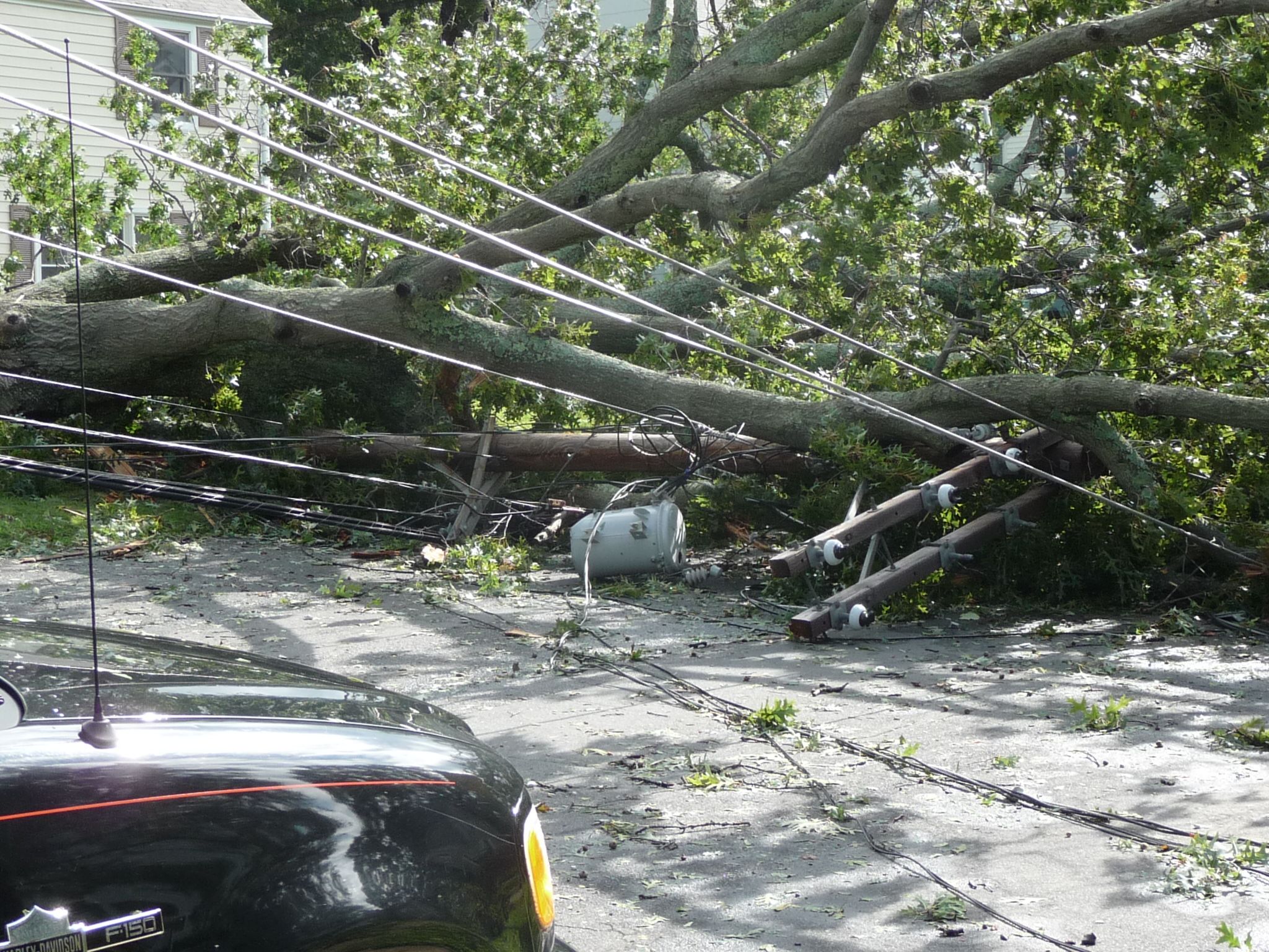 Hurricane-force winds toppled a tree onto a SMECO utility pole
